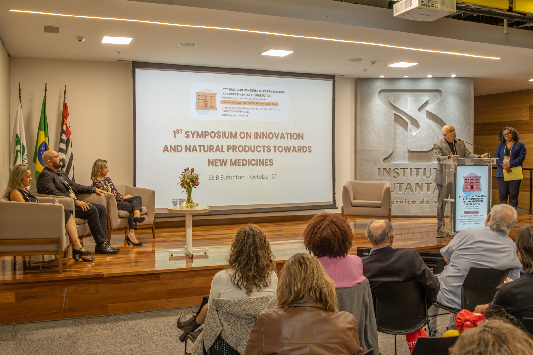 Como atividade satélite do 57º Congresso da Sociedade Brasileira de Farmacologia e Terapêutica Experimental (SBFTE), foi realizado, no dia 20 de outubro, em São Paulo (SP), o 1º Simpósio de Inovação e Produtos Naturais: Rumo a Novos Medicamentos, sediado na Escola Superior do Instituto Butantan (ESIB). O evento resultou de uma parceria entre a Comissão da Rede Norte-Nordeste-Centro-Oeste (SBFTE) e a ESIB, contando com o apoio do Vice-Diretor do Instituto Butantan, Prof. Rui Curi, e da dedicada comissão local: Aryene Trezena, Cristiane Flora Villarreal (UFBA), Fernanda Regina Casagrande Giachini Vitorino (UFMT), José Wilson do Nascimento Corrêa (UFAM), Maria Teresa Ghiuro Valentini Abdullatif (IBu), Soraia K. P. Costa (USP-SP), Vanessa Olzon Zambelli (IBu) e Wothan Tavares de Lima (USP-SP).