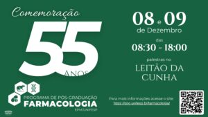 Mais informações e inscrições: https://ppg.unifesp.br/farmacologia/eventos/simposio-ppg-farmacologia-55-anos#inscricoes
