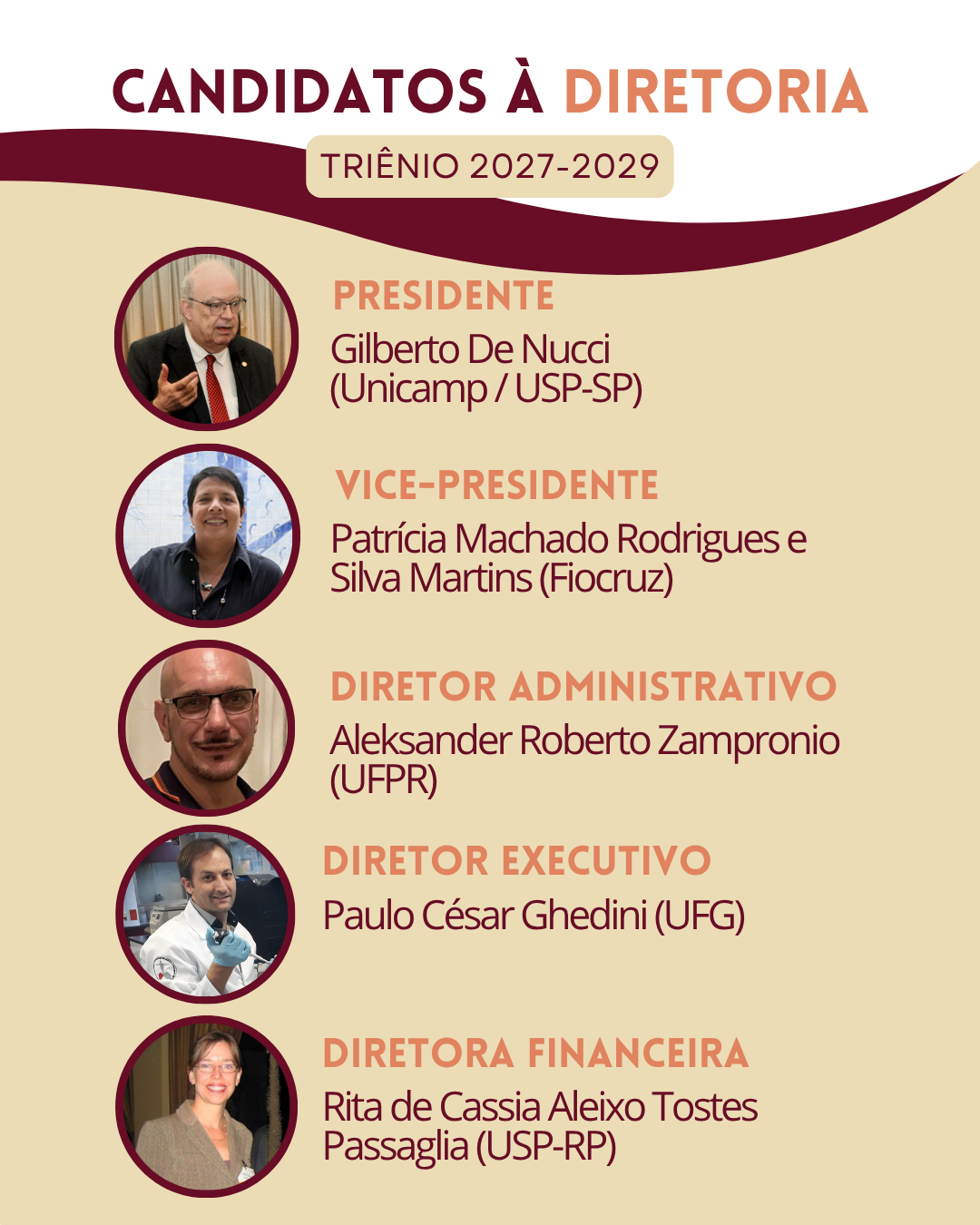 – Diretor Financeiro: Rita de Cassia Aleixo Tostes Passaglia (USP-RP) – CV Lattes.