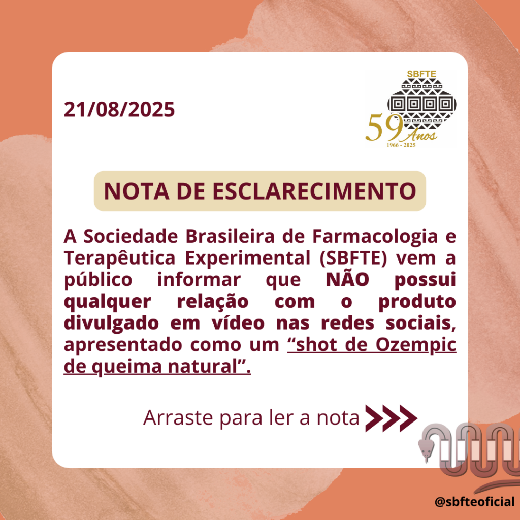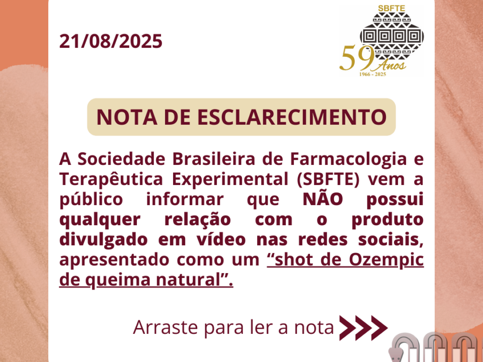 A Sociedade Brasileira de Farmacologia e Terapêutica Experimental (SBFTE) vem a público informar que NÃO possui qualquer relação com o produto divulgado em vídeo nas redes […]