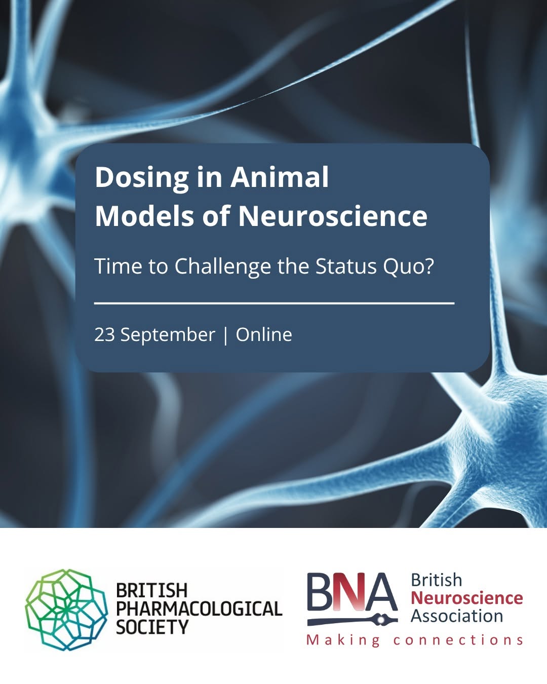 O evento “Dosing in Animal Models of Neuroscience”, promovido em conjunto pela British Neuroscience Association (BNA) e pela British Pharmacological Society (BPS), será realizado online no dia 23 de setembro de 2025, das 9h30 às 16h15 (BST).