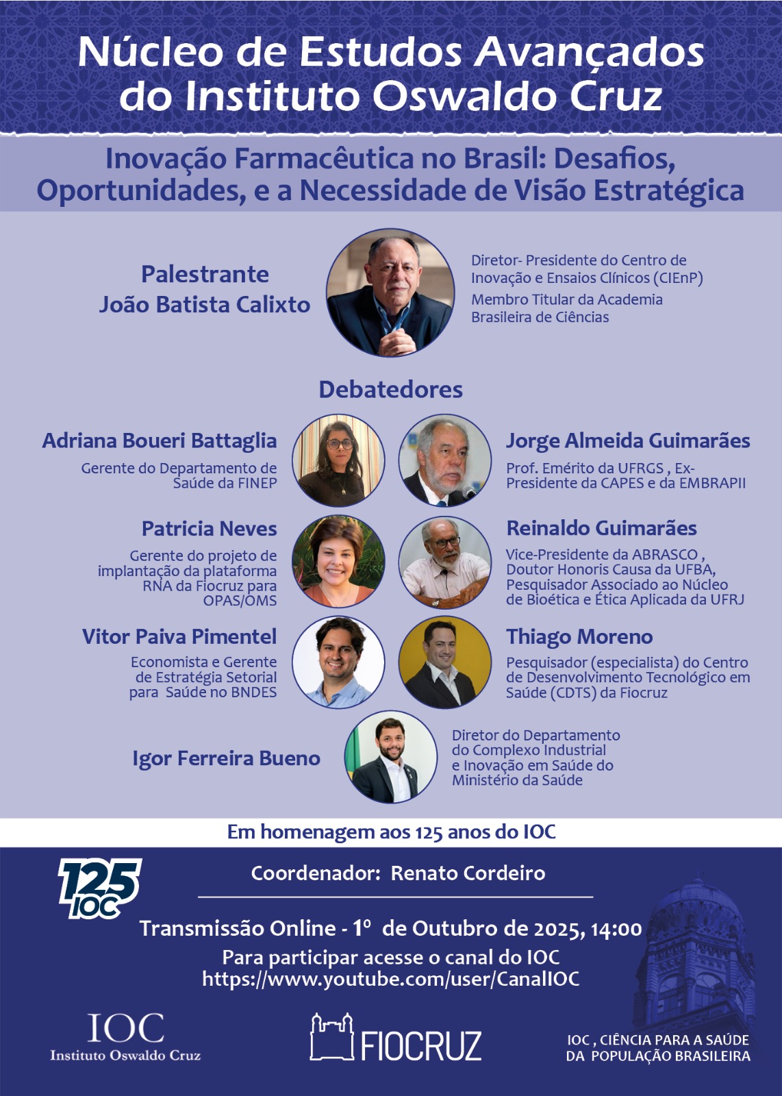 Save The Date: Seminário “Inovação Farmacêutica no Brasil: Desafios, Oportunidades, e a Necessidade de Visão Estratégica” – Homenagem aos 125 anos do Instituto Oswaldo Cruz https://sbfte.org.br/save-the-date-seminario-inovacao-farmaceutica-no-brasil-desafios-oportunidades-e-a-necessidade-de-visao-estrategica-homenagem-aos-125-anos-do-instituto-oswaldo-cruz/ https://sbfte.org.br/save-the-date-seminario-inovacao-farmaceutica-no-brasil-desafios-oportunidades-e-a-necessidade-de-visao-estrategica-homenagem-aos-125-anos-do-instituto-oswaldo-cruz/#respond Wed, 24 Sep 2025 12:41:55 +0000 https://sbfte.org.br/?p=9655 […]]]> No dia 1º de outubro de 2025, às 14h, o Núcleo de Estudos Avançados do Instituto Oswaldo Cruz (IOC/Fiocruz) realizará um seminário online em homenagem aos 125 anos do IOC, com o tema: “Inovação Farmacêutica no Brasil: Desafios, Oportunidades, e a Necessidade de Visão Estratégica”.