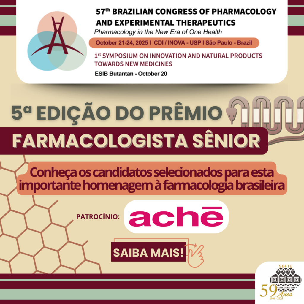 É com grande satisfação que a SBFTE, em parceria com o Aché Laboratórios Farmacêuticos, anuncia os finalistas da 5ª edição do Prêmio Farmacologista Sênior 2025! Confira […]