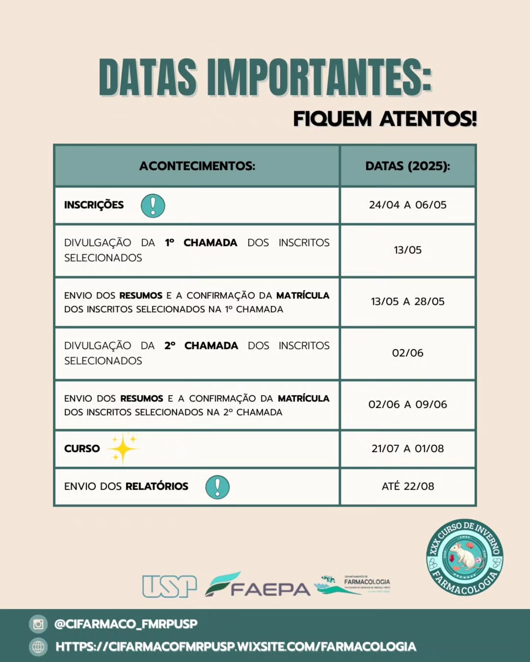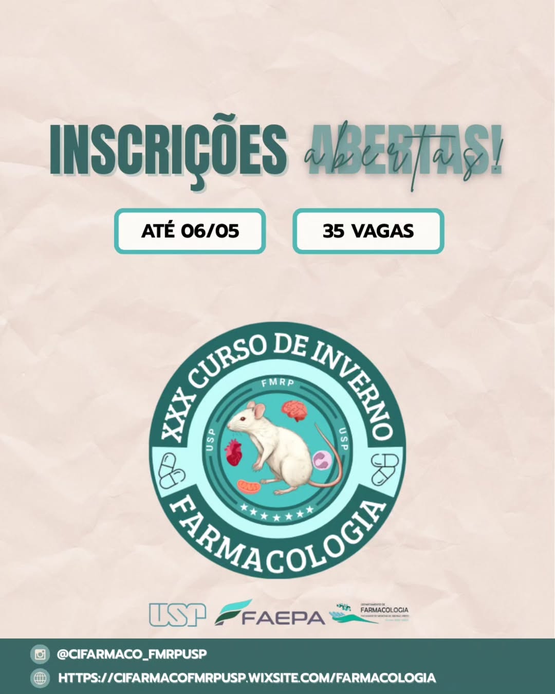 Mais informações e inscrições: https://farmacounicamp.wixsite.com/curso