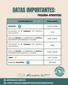 As submissões de resumos estão abertas até 30 de setembro de 2025, contemplando inovações, práticas educacionais ou pesquisas formais na área de ensino em farmacologia.