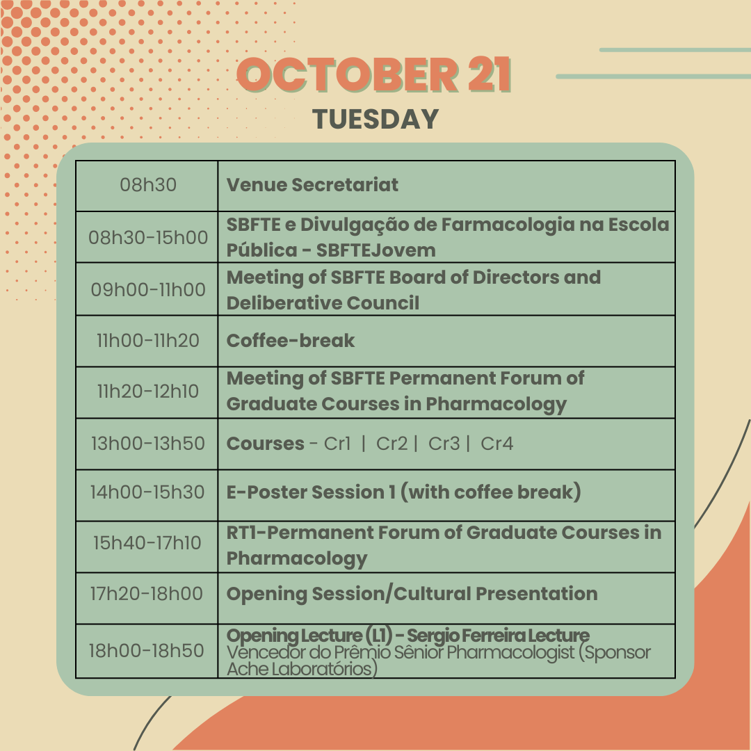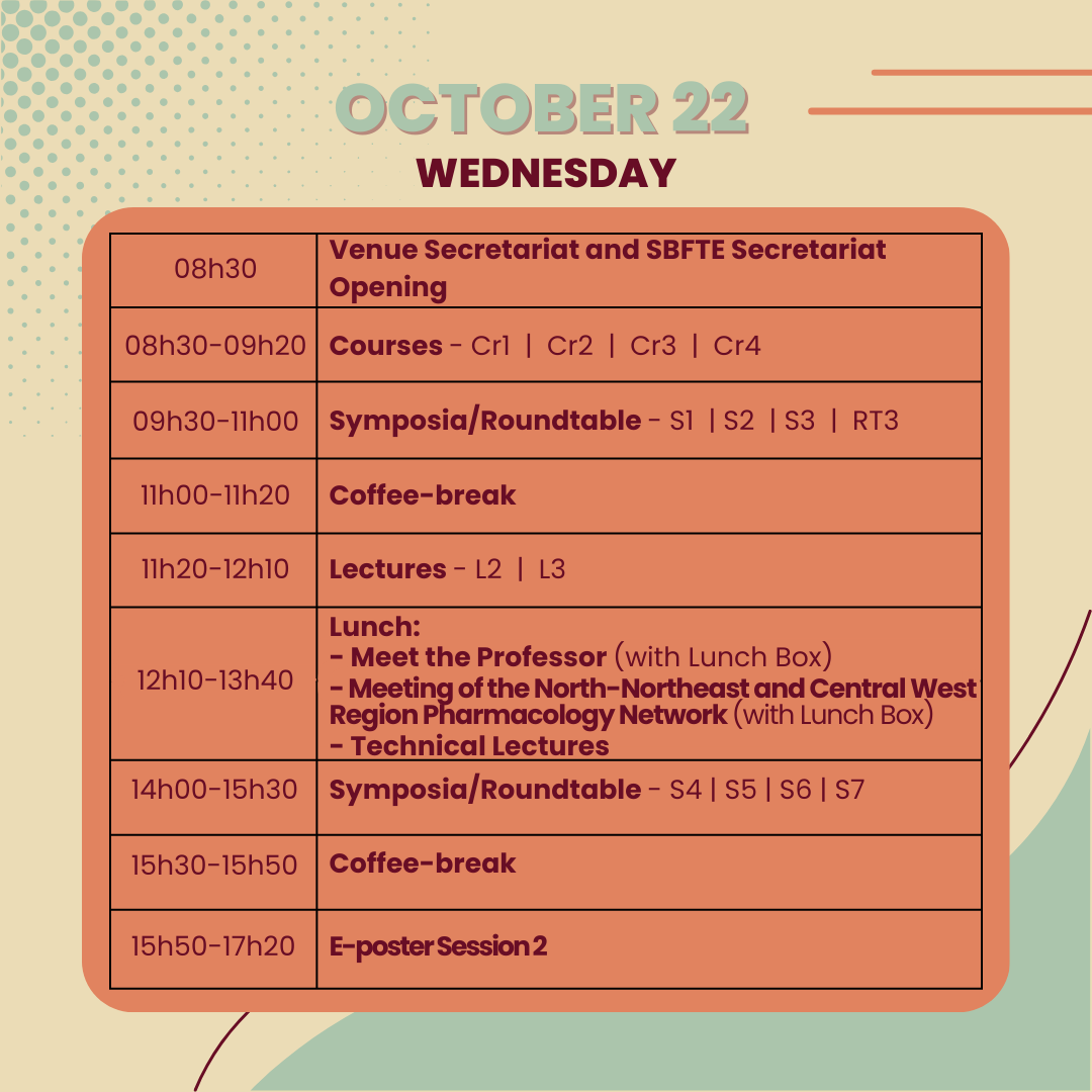Confira, nas imagens abaixo, o Programa Esquemático do 57th Brazilian Congress of Pharmacology and Experimental Therapeutics!