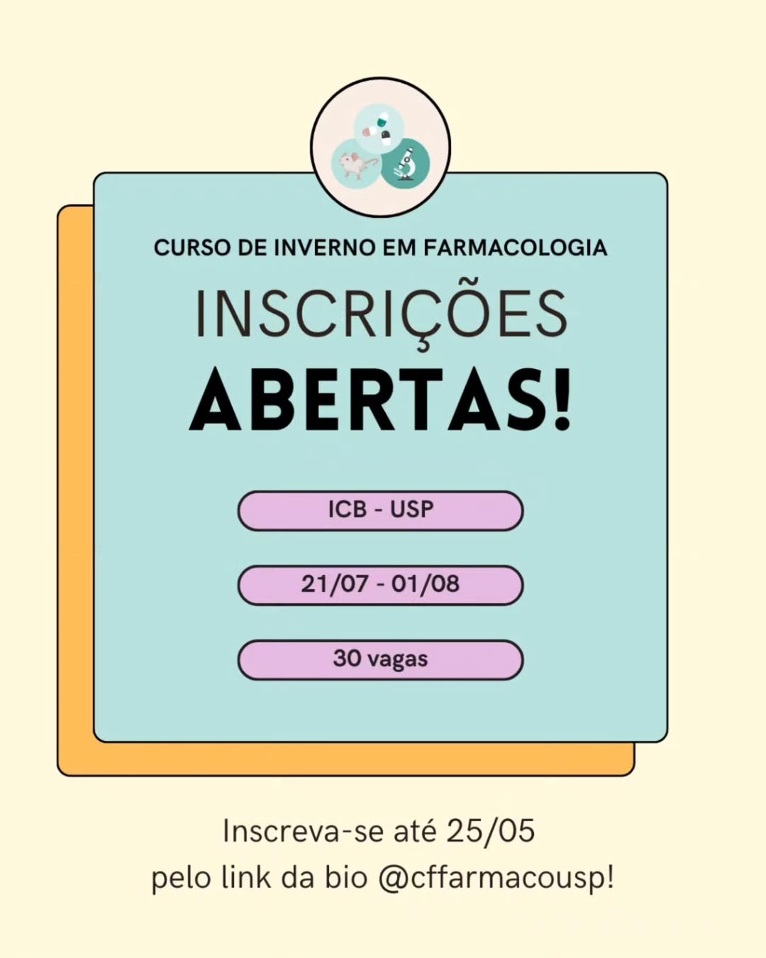 Inscrições abertas para a 19ª edição do Curso de Iniciação Científica em Farmacologia, Fisiologia e Bioquímica Prof. Luiz Capelo