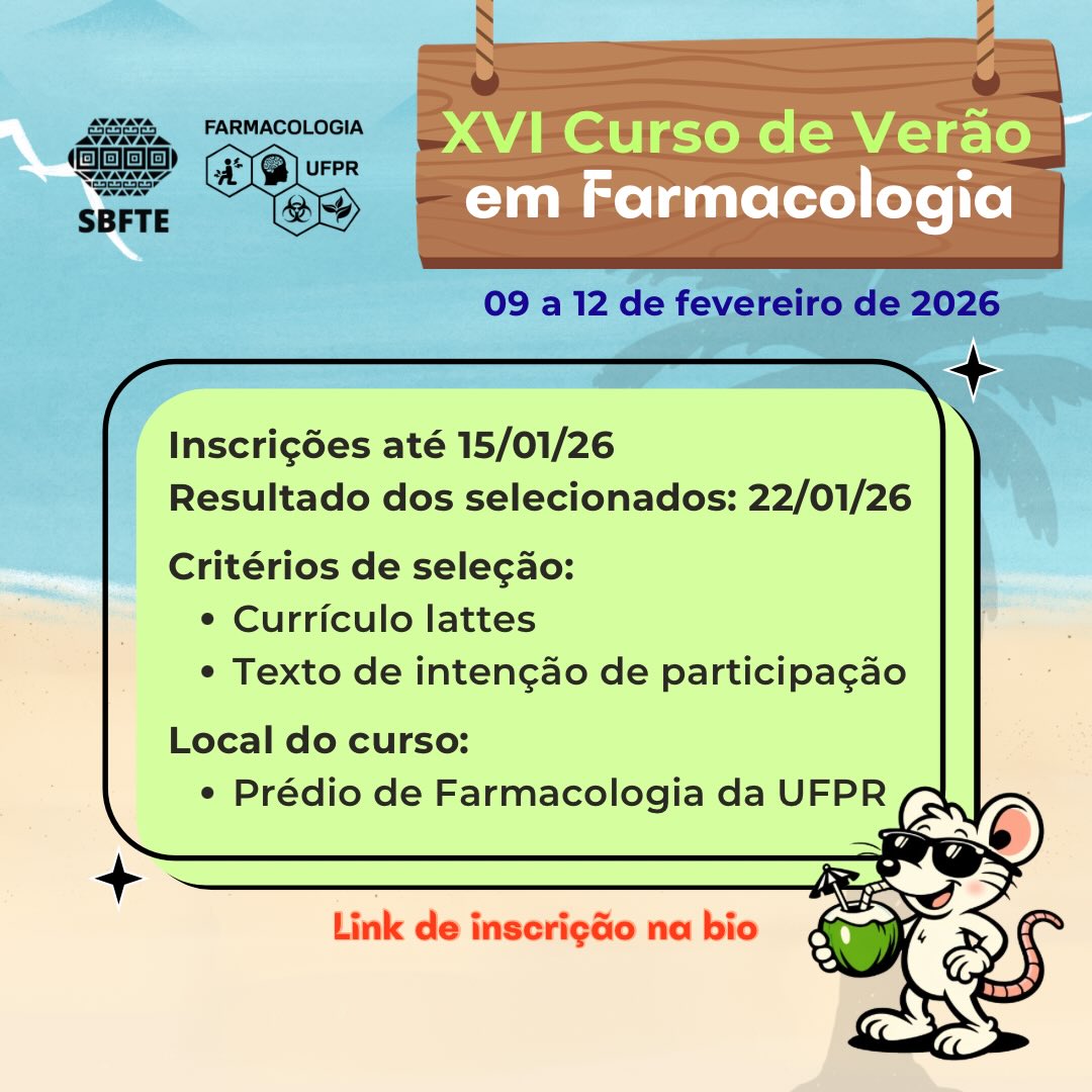 6 de janeiro de 2026Inscrições abertas: XVI Curso de Verão em Farmacologia da UFPR