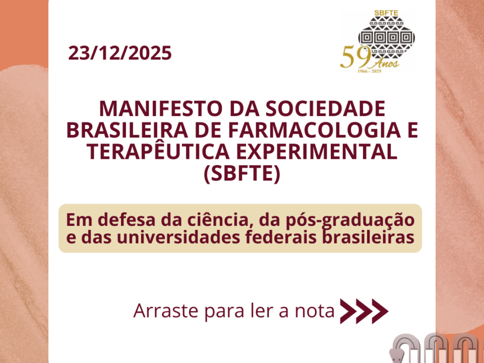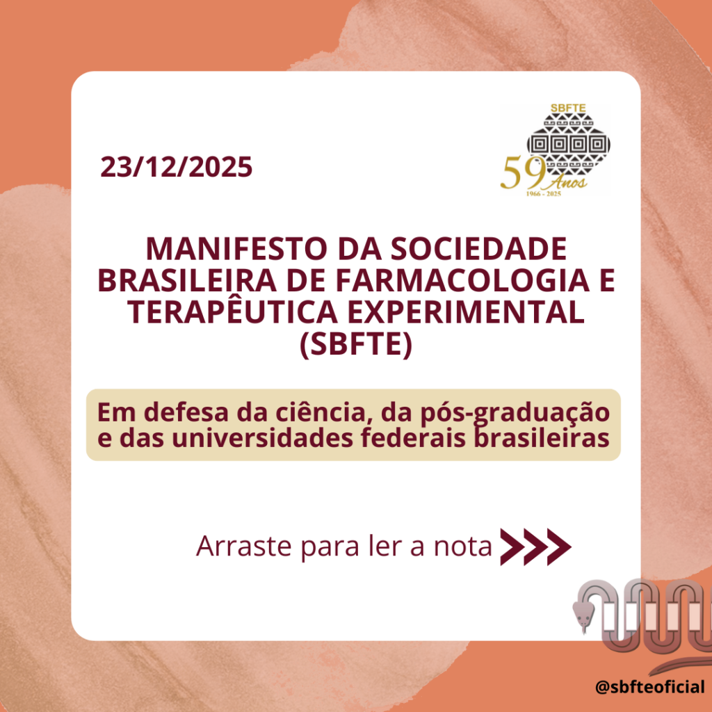 A Sociedade Brasileira de Farmacologia e Terapêutica Experimental (SBFTE) vem a público informar que NÃO possui qualquer relação com o produto divulgado em vídeo nas redes sociais, apresentado como um “shot de Ozempic de queima natural”.