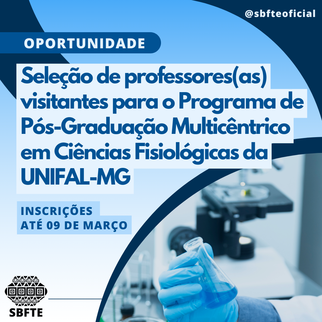 16 de janeiro de 2026Seleção de professores(as) visitantes para o Programa de Pós-Graduação Multicêntrico em Ciências Fisiológicas da Universidade Federal de Alfenas (UNIFAL-MG)