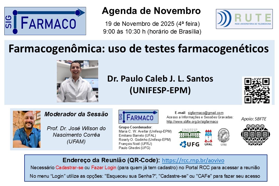 18 de novembro de 2025SIG Farmaco – “Farmacogenômica: uso de testes farmacogenéticos”