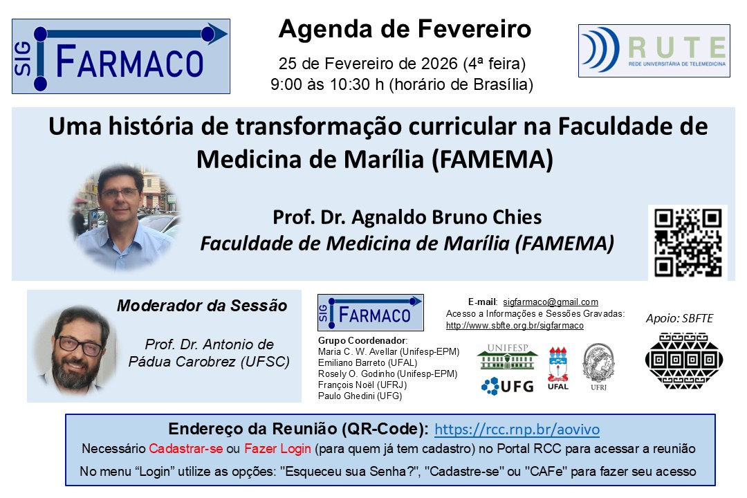 13 de fevereiro de 2026SIG Farmaco – “Uma história de transformação curricular na Faculdade de Medicina de Marília (FAMEMA)”