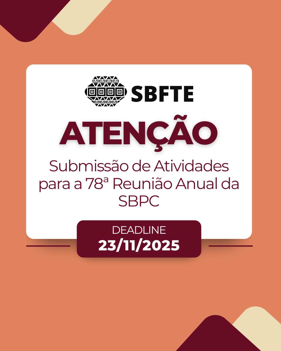 24 de novembro de 2025Submissão de Atividades para a 78ª Reunião Anual da SBPC