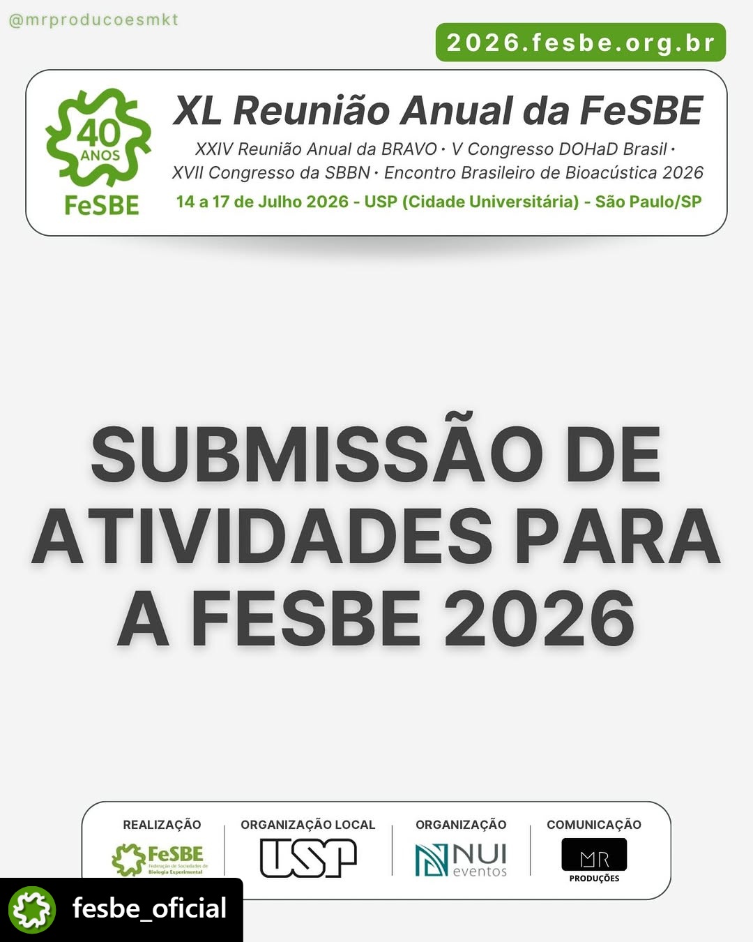 Informações e submissões: https://2026.fesbe.org.br/programa%C3%A7%C3%A3o